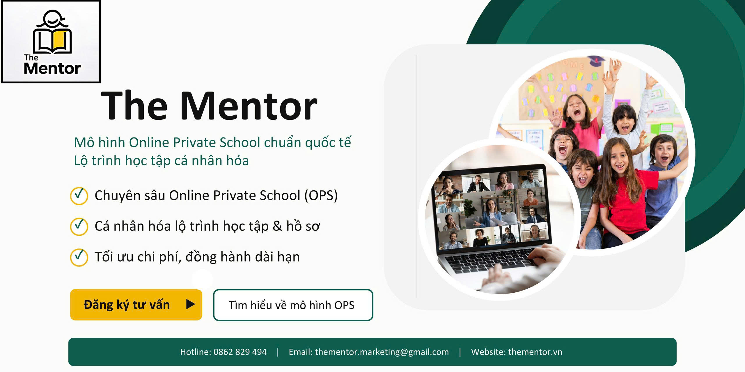 The Mentor là đơn vị cố vấn giáo dục tiên phong, chuyên sâu vào mô hình Online Private School (OPS) với trọng tâm là các chương trình được công nhận toàn cầu.