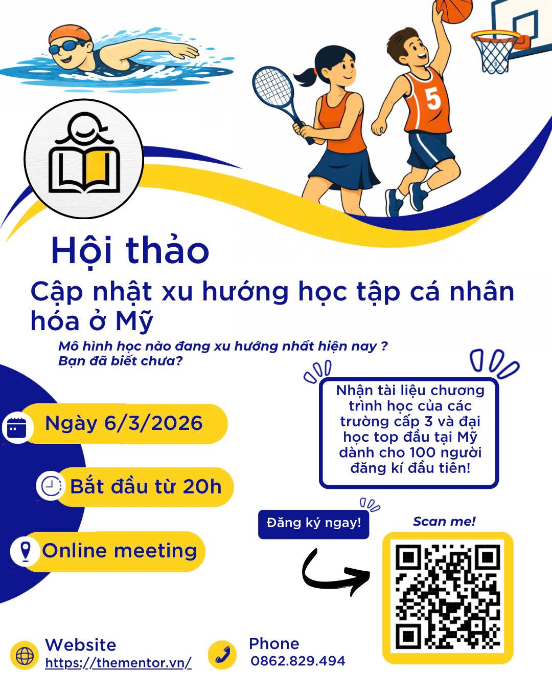 The Mentor trân trọng giới thiệu hội thảo trực tuyến “Cập nhật xu hướng học tập cá nhân hóa tại Mỹ” nhằm mang đến cho phụ huynh, học sinh và sinh viên góc nhìn rõ ràng hơn về một mô hình giáo dục linh hoạt, hiện đại và đề cao tính tự chủ.
